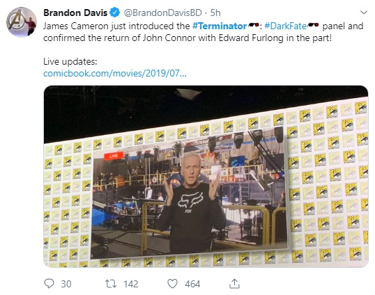 A través de un vídeo enviado desde el set de sus secuelas de Avatar, James Cameron envió esta confirmación en el panel, tras presentar la película.