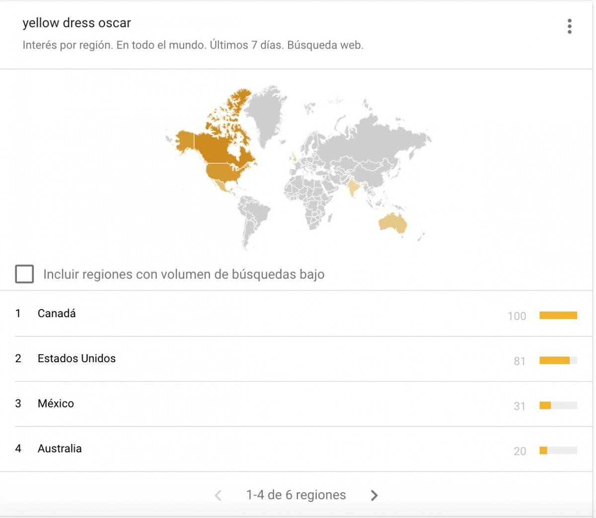 En un artículo del medio The Huffington Post, publicaron que en Estados Unidos, Canadá, India, Reino Unido y Australia miles de usuarios la buscaron por la chica del vestido amarillo en los Oscar, incluso en redes sociales.