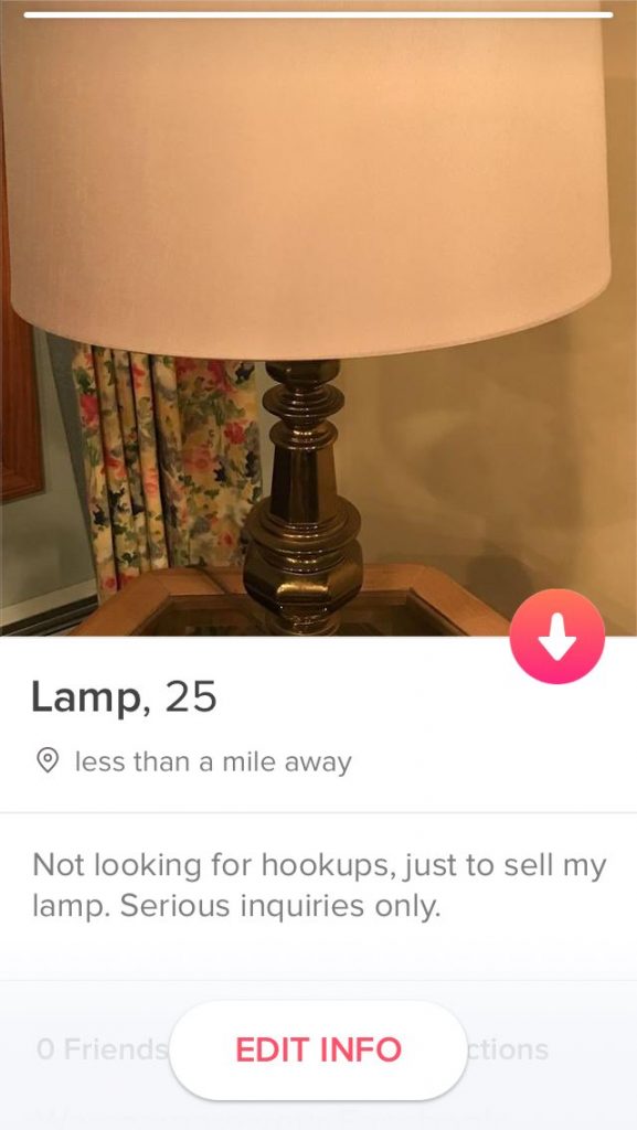 I made a tinder to sell my lamp and got so many matches and messages that it crashed my phone and sent it into a crash loop. It’s cool though, I sold it. thanks Joseph. pic.twitter.com/EP0cIjS2WN