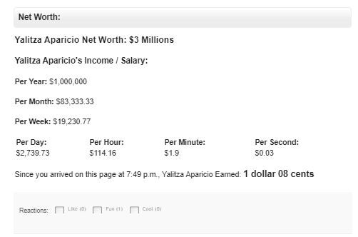 En la página se explica que Yalitza ganó un millón de dólares por año además que sus ingresos al mes estarían en los 83 mil 333 dólares, por lo que estaría ganando aproximadamente 19 mil 230 dólares por semana.