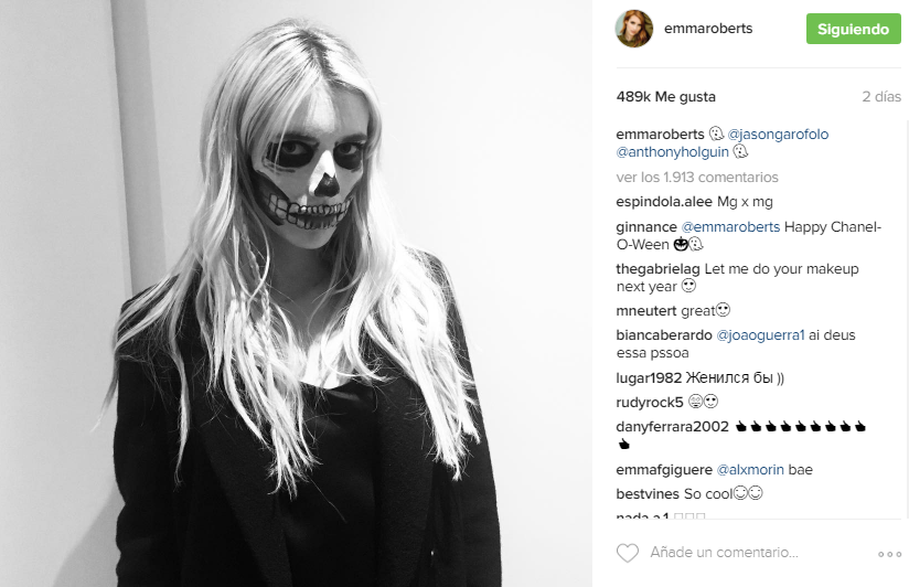 9. Emma Roberts unicamente quiso pintarse el rostro de una calavera muy terrorifica: