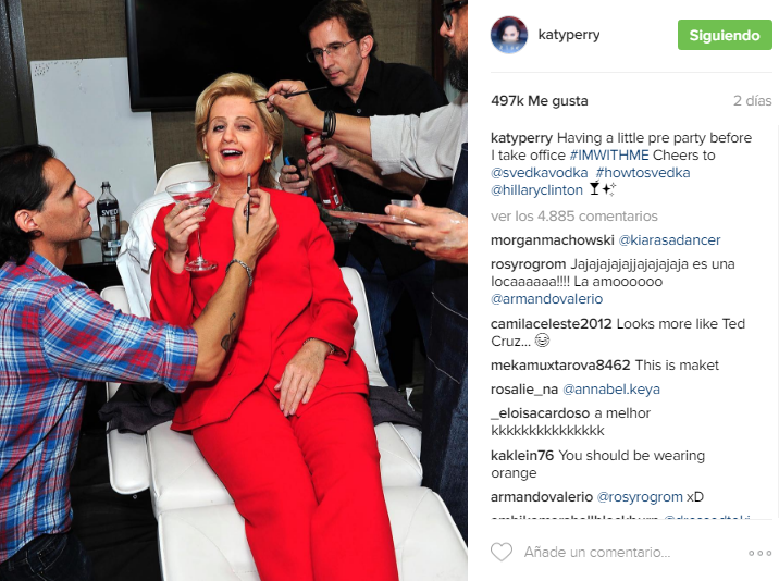 7. Katy Perry decidió seguir mostrando su apoyo incondicional a la candidata del Partido Democrata a la presidencia de los Estados Unidos Hillary Clinton, caracterizándose como ella: