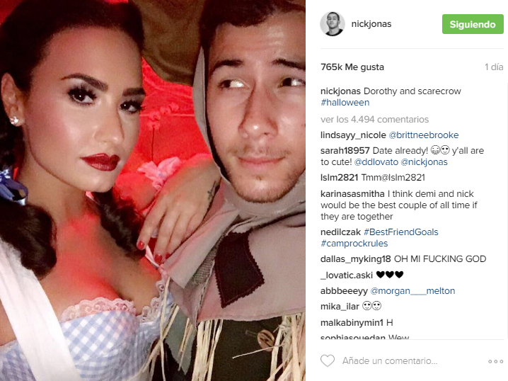 6. Nick Jonas y Demi Lovato, se disfrazaron de Doroty, de la famosa historia ‘El Mago de Oz’ mintras tanto Nick quiso ser el espantapájaros: