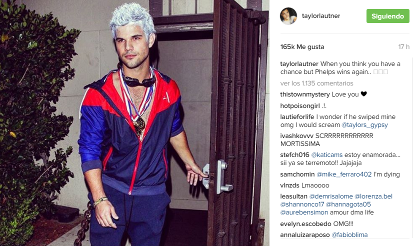 8. Taylor Lautner decidió disfrazarse del nadador Ryan Lochte, cambiando su color de cabello: