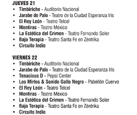 Luego de darse a conocer que habría 3 días de luto nacional por órdenes del Gobierno Federal, Ocesa dio a conocer a través de un comunicado que desde ayer hasta el domingo 24 de septiembre los eventos fueron cancelados y posiblemente reprogramados.