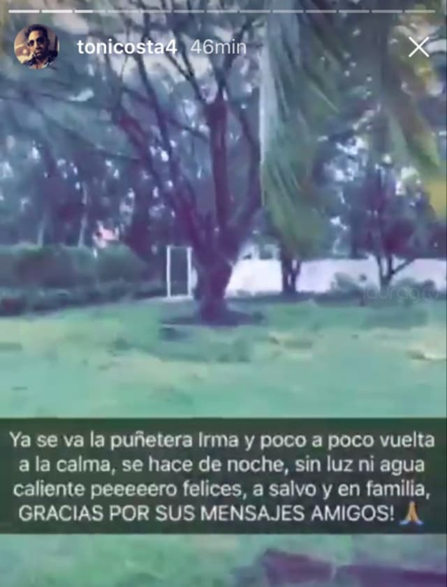 Adamari López y su esposo Toni Costa, también compartieron imágenes a través de Instagram Stories, de cómo quedó su casa por los destrozos de Irma, pero en todo momento demostraron que se encuentran más fuertes que nunca, y aunque su casa quedó afectada, esperan pronto reconstruir lo perdido.