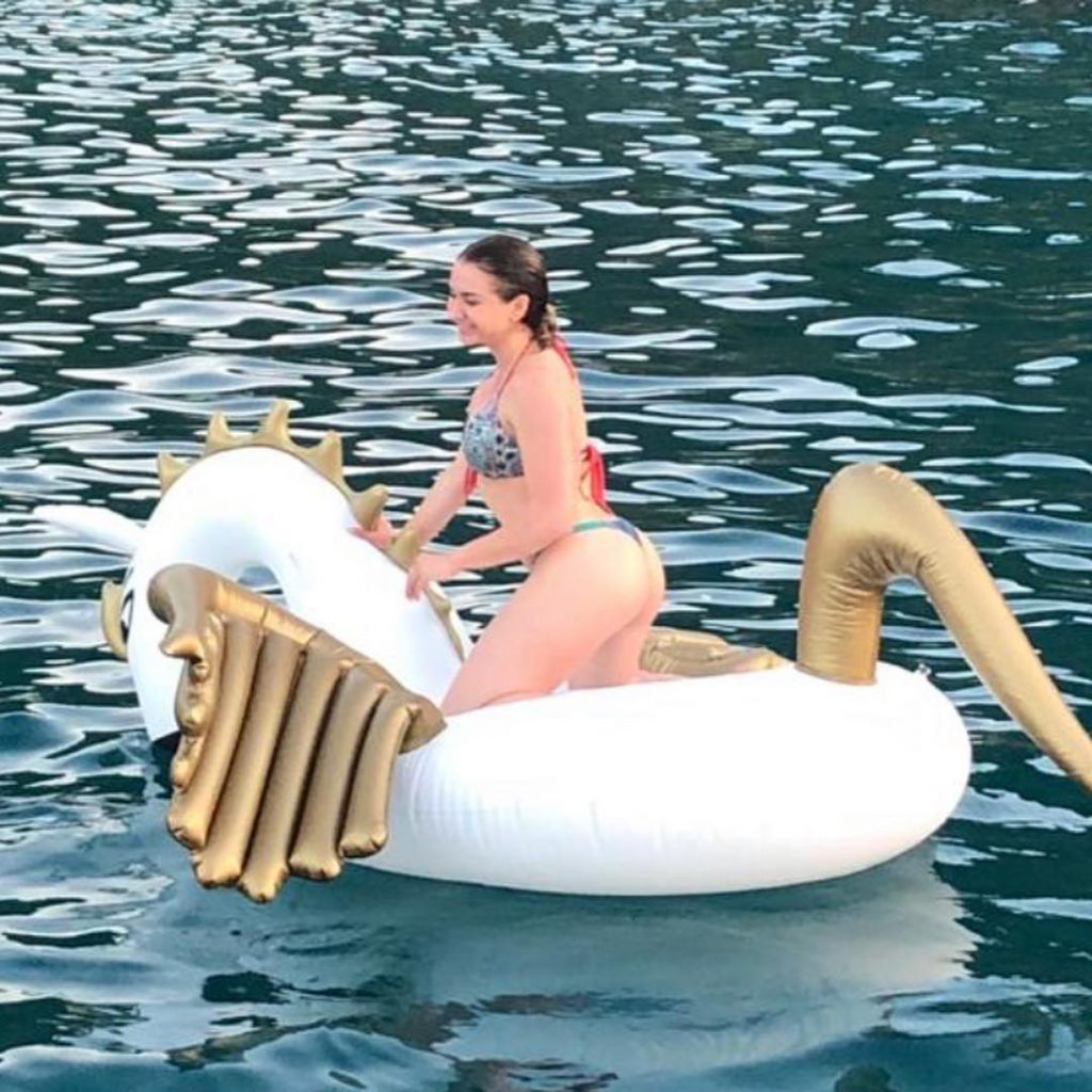 “Un poquitillo de diversión, agua y festejos …. 🍾 🎄🎉La verdad es que 5 min. después pobre Pegaso se desinfló 😂 demasiado peso para el …”, se lee al pie de las imágenes que recolectaron miles de ‘me gusta’.