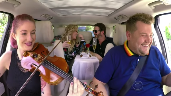 Kelly Clarkson apareció sorpresivamente en el Carpool Karaoke de James Corden para lidiar el tránsito del momento con buena música, risas, algunas anécdotas y comidas románticas dentro de la camioneta.