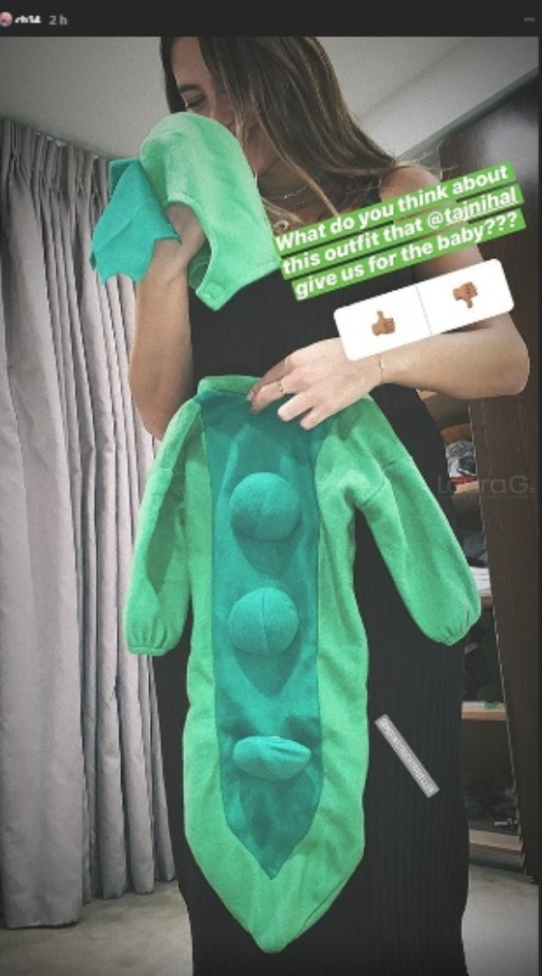 Ambos han compartido su felicidad por esta nueva etapa a través de sus historias breves de la plataforma y el futbolista mexicano robó corazones al compartir esta tierna imagen de su novia con un mameluco en forma de dinosaurio.