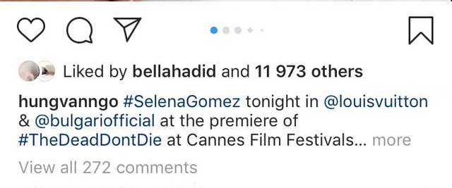 En una imagen aparece Selena Gomez con un perfecto delineado de ojos, labios rojos y un collar Bulgari y Bella Hadid reaccionó con un like, lo que algunos medios especializados interpretaron como una señal del fin a su rivalidad.
