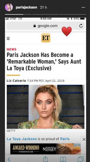 Esto más que alegrar a Paris, la puso a la defensiva con algunos los miembros de su familia y utilizó su cuenta de Instagram para enviar un mensaje a todos los Jackson.