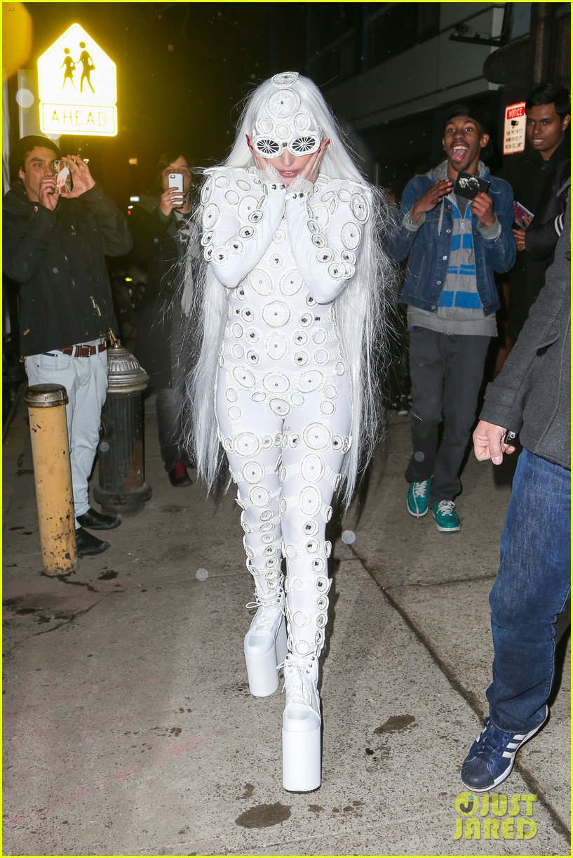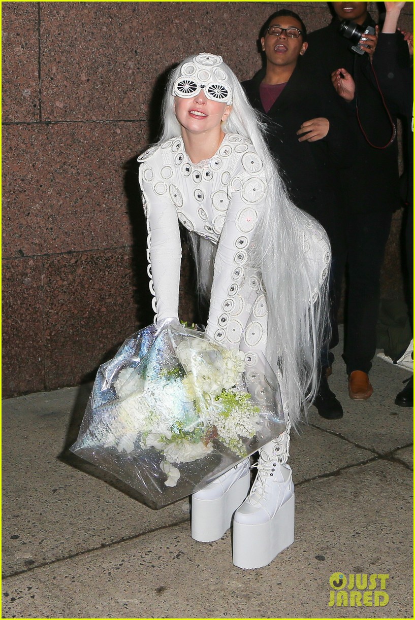 Después de haber salido semidesnuda a las calles de NY, a Lady Gaga ahora se le ocurrió vestirse de blanco para representar una novia (!). Pero no crean que una novia tradicional sino una mujer en la versión futurista de la Naranja Mecánica.