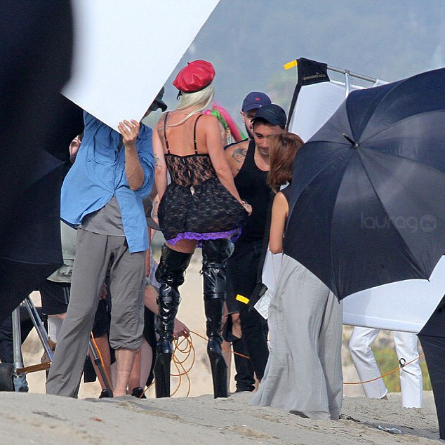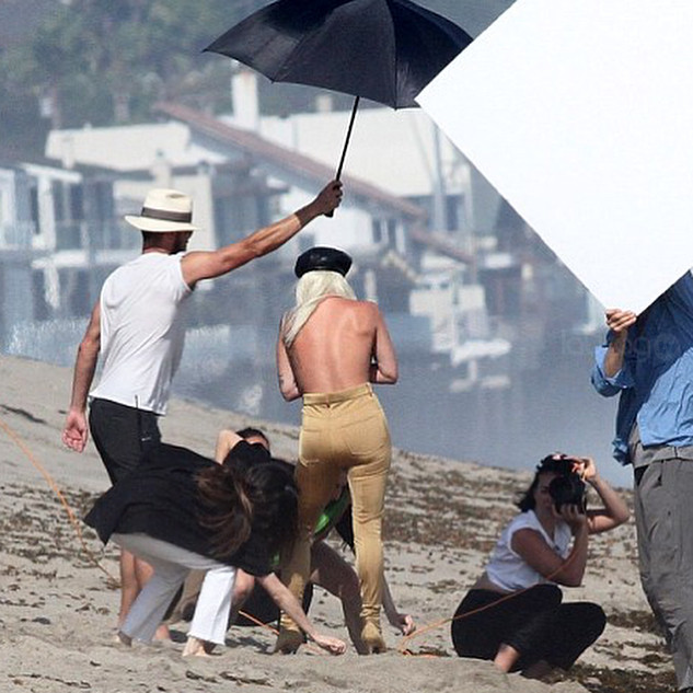 Durante esta sesión de fotos, Gaga tuvo varios cambios de vestuario en plena playa, pasando de la dominatriz francesa a la ninfa del mar, dejó más de una ocasión al descubierto su trasero frente a los paparazzi además que frenta a las cámara también lo presumió la mayor parte del tiempo.