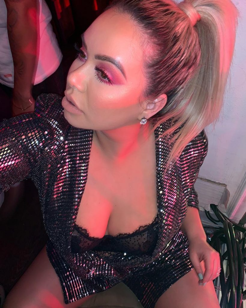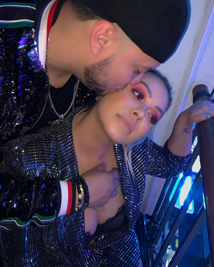 En una de fotografía llamó la atención de sus más fieles admiradores, ya que aparece junto a su pareja Lorenzo Méndez, ex vocalista de la Original Banda el Limón, quien quedó fascinado con su escote de infarto y no dudó en demostrarlo.