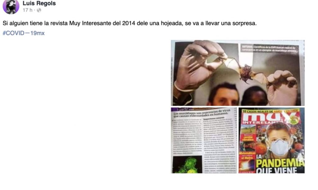 “Los murciélagos son repertorios de virus que causan enfermedades en humanos”, se lee en el título del artículo, sin embargo, hasta ahora no se sabe si estos están relacionados con el COVID-19, ya que no hay estudios que lo comprueben, solo son teorías.