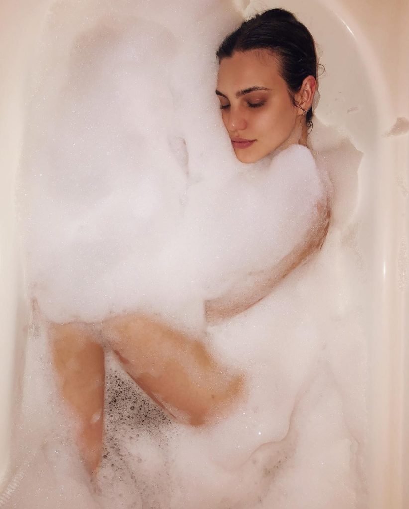 “Yo y mi obsesión con las 🛁  Amor es que necesites 💕✨🍷👯‍♀️ y tu mejor amiga te prepare la tina con espuma 🤯 nos escapamos de fin de semana y ella sabe que mi momento favorito es llegar a meterme a la bañera. De mis meditaciones favoritas (y más efectivas) han sido en la tina -por si les interesaba hahaha- y obvio el recuerdo lo tomó esha 💕 “, se lee al pie de la imagen que emocionó a su millón de seguidores.