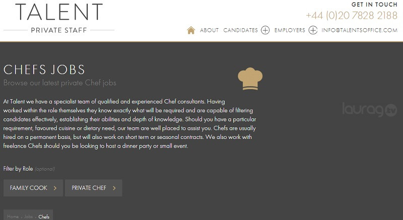 Incluso se acercó al portal británico Talent Private, para encontrar a su chef personal, para satisfacer sus estricta dieta. La oferta indica que el candidato trabajará en la zona exclusiva londiense de Mayfair, pero también deberá contar con pasaporte vigente para viajar a Estados Unidos.