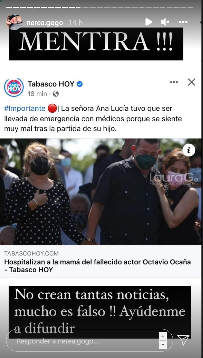 Fue a través de la cuenta oficial de Instagram de Nerea Godínez, prometida del fallecido actor desmintió esta noticia, por medio de sus historias breves de la plataforma.