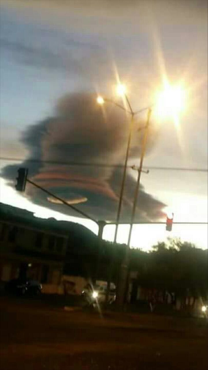Se trata de un fenómeno llamado “altocúmulus lenticularis”, el cual se asemeja a un remolino invertido, y es formado por nubes de gran tamaño con forma de lente o lenteja que son esculpidas o formadas por el viento en zonas de montañas.