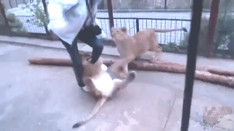Aunque aparentemente los acarician, algunos usuarios han resaltado que las mujeres en varias ocasiones los provocan para ser atacadas y reprueban la acción de que los leones estén enjaulados.