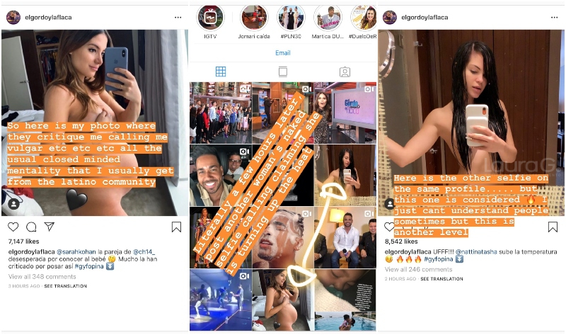 “Así que aquí está mi foto en la que me critican llamándome vulgar. Toda la mentalidad de mente cerrada que generalmente obtengo de la comunidad latina. Literalmente, unas horas más tarde, publicaron un desnudo de otra mujer diciendo que está aumentando el calor. Aquí está la otra selfie en el mismo perfil, pero esta se considera caliente. Simplemente no puedo entender a la gente a veces, pero este es otro nivel”, explicó a través de sus historias.