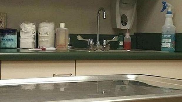 La imagen fue captada por un veterinario que estaba buscando al gato, tardo algunos minutos en encontrarlo, debido a lo cual le tomó una foto del recuerdo a su consultorio con el gato escondido.