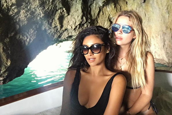 Protagonista de 'Pretty Little Liars' visita una playa nudista y se pasea topless junto a una sexy rubia
