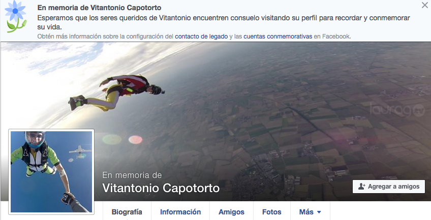 Capotorto, era italiano y vivía en DeLand, amaba el cielo y en sus redes sociales siempre había fotos de él en el aire, tenía la formación requerida para realizar saltos solo.