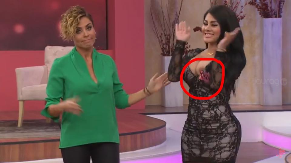Mishelle brincó tanto cuando anunciaron su regreso al programa, que el accidente fue descubierto por los seguidores del programa y las capturas han recorrido toda la web.