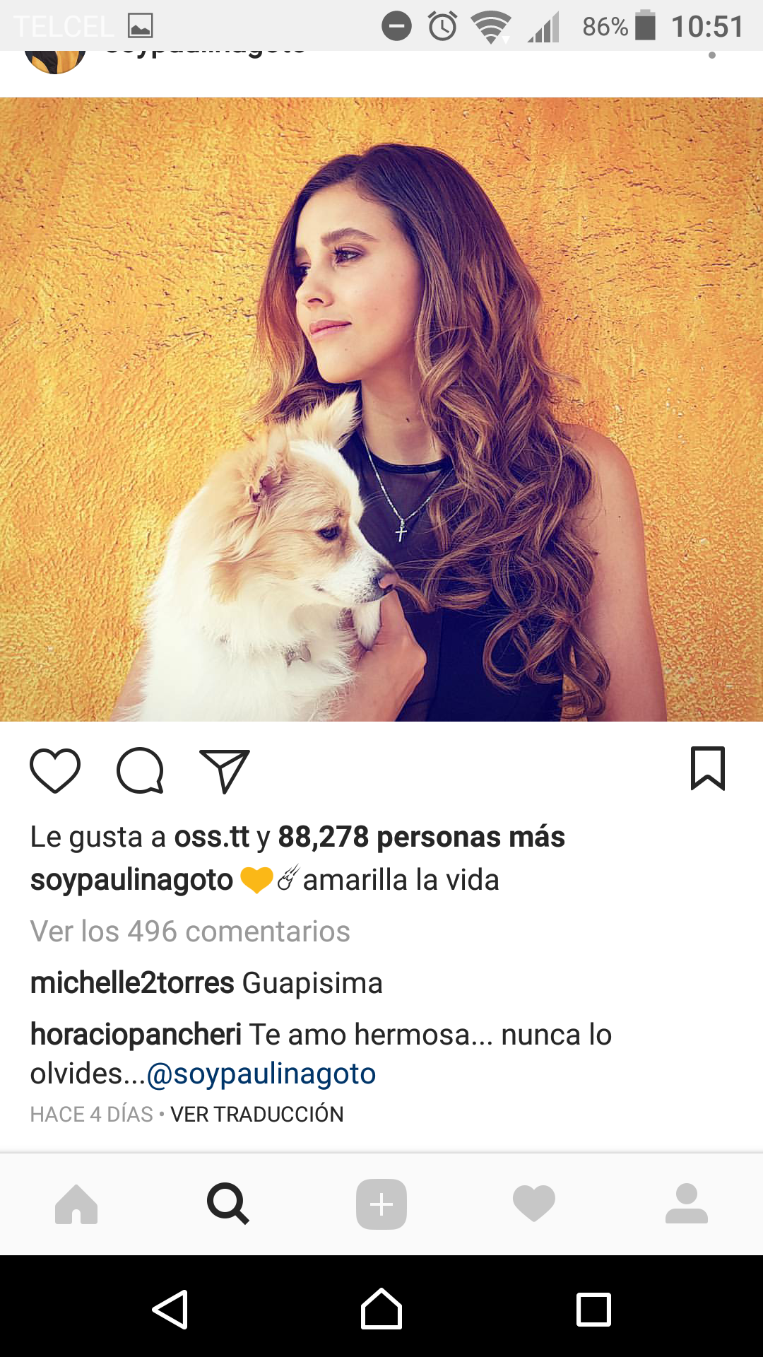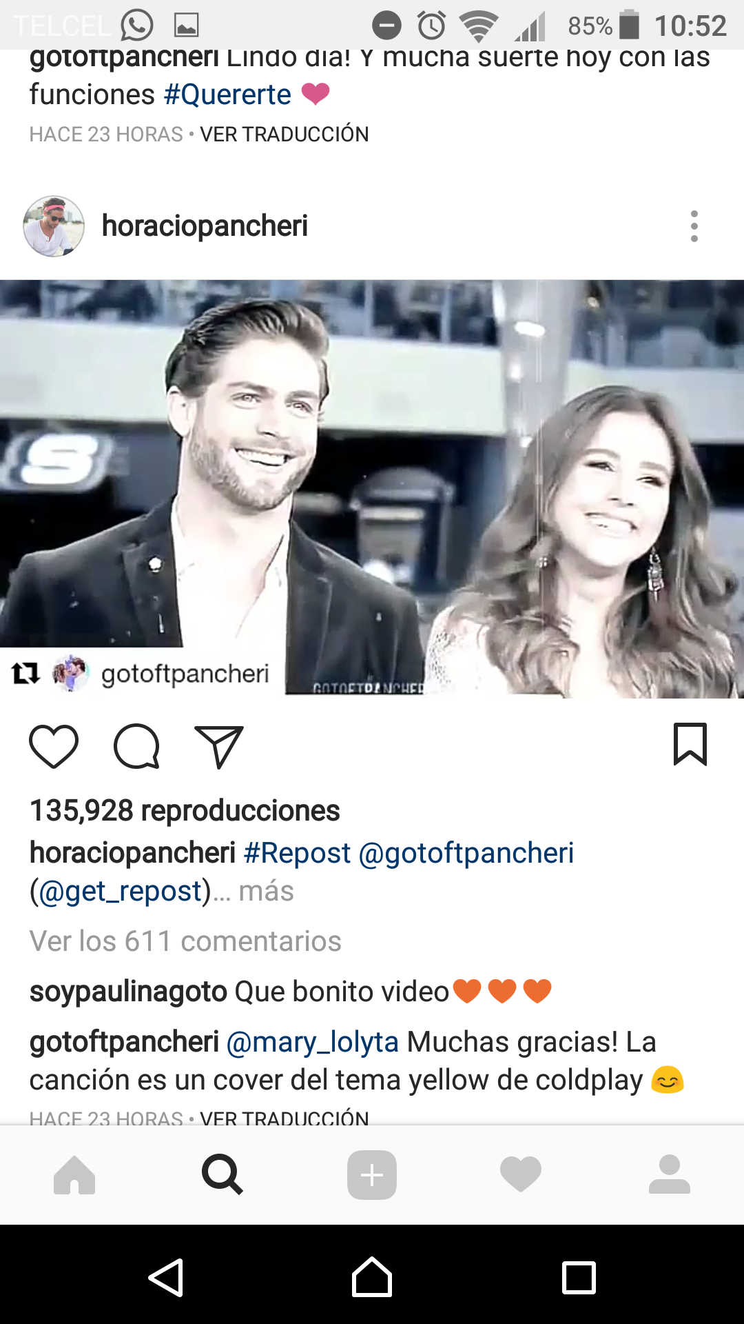 Por su parte Paulina también ha comentado sus fotografías y un vídeo que colgó Horacio de la pareja realizado por un fan, ella escribió: “Qué bonito vídeo” junto a varios emojis de corazón.
