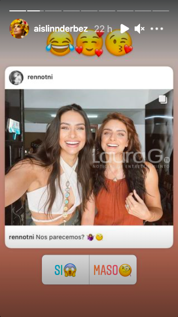 Debido a lo anterior, Renata Notni decidió compartir una imagen junto a Aislinn, ambas aparentemente estaban trabajando juntas, y decidieron realizar una encuesta para confirmar o descartar su parecido.