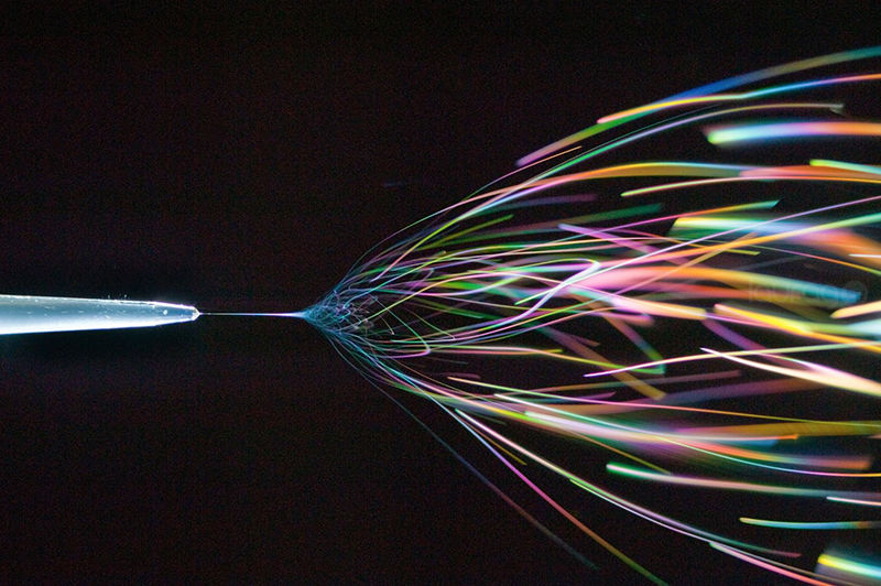 - ‘Electrospinning’ un método donde una carga eléctrica extrae fibras de un líquido, fue capturado por Robert Lamberts: