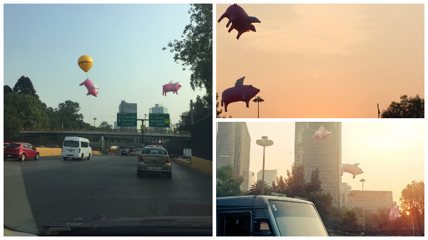 Cientos de cerdos vuelan en el cielo de la Ciudad de México