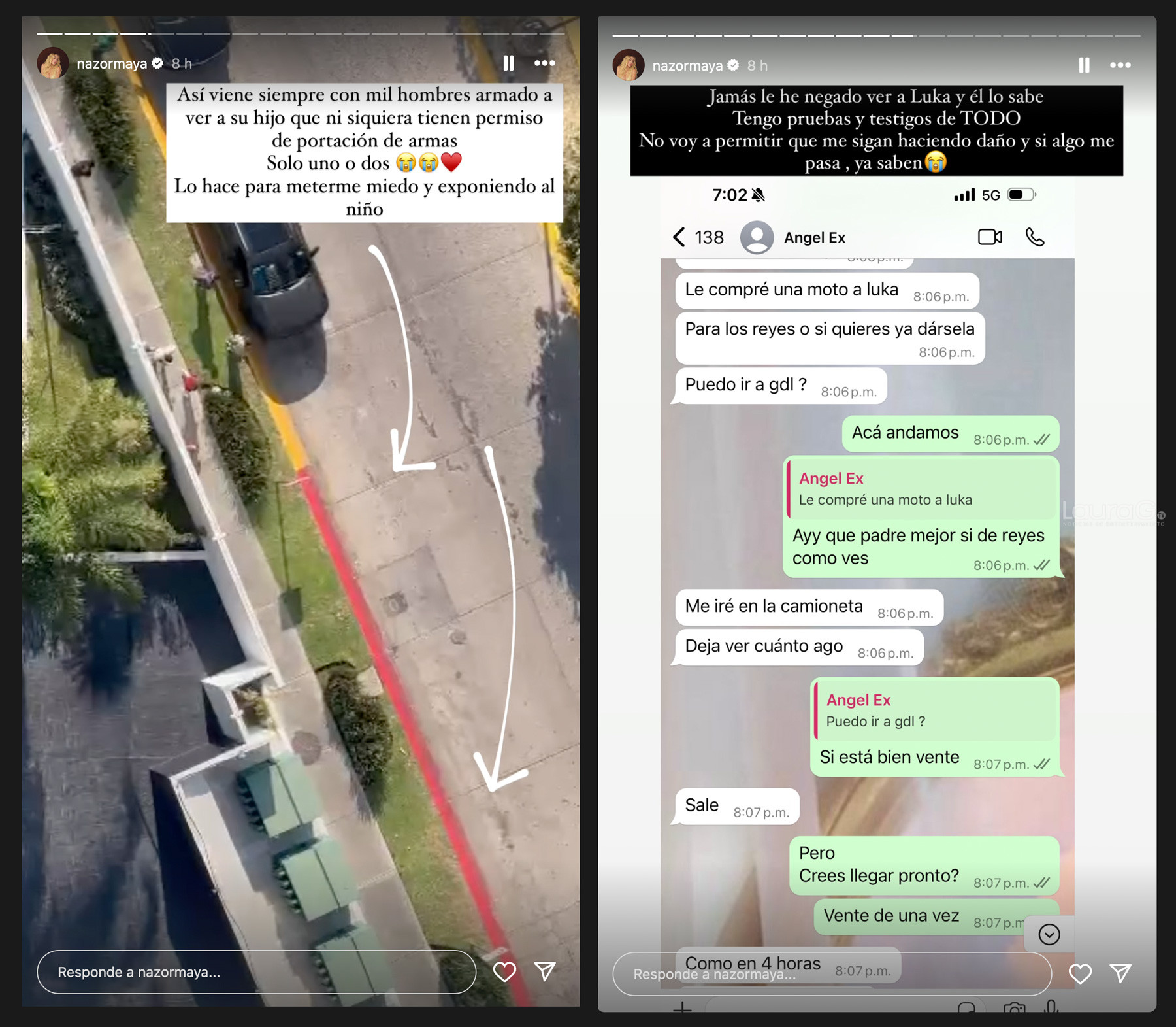 A través de Instagram, Maya respondió a las recientes afirmaciones del cantante, quien aseguró sentirse triste por no poder convivir con su hijo y reveló que cumple con el pago de una pensión mensual de 250 mil pesos. Sin embargo, la influencer desmintió su versión y afirmó que, aunque existe un acuerdo para las visitas, el rapero no respeta los horarios establecidos.