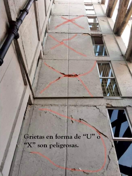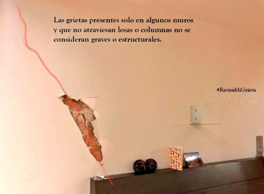 Cuando existen grietas diagonales son las más peligrosas y debes alertar a Protección Civil y alejarte pues existe probabilidad de que colapse el muro.