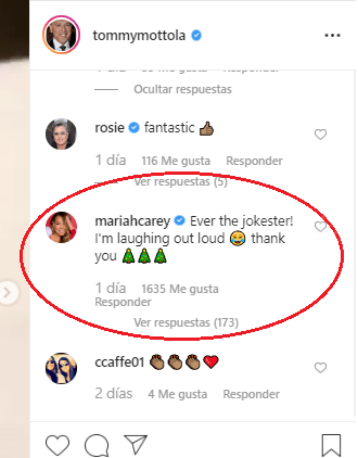 Por supuesto que Mariah le contestó de inmediato: “Siempre tan bromista, ¡me estoy riendo a carcajadas, gracias!”, se puede leer en la sección de comentarios.