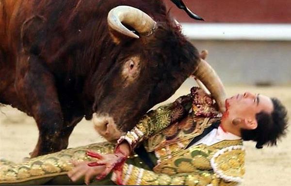 El torero español Saúl Jiménez Fortes recibió el jueves una terrorífica cornada en el cuello durante una corrida de toros en la plaza de las Ventas en Madrid.