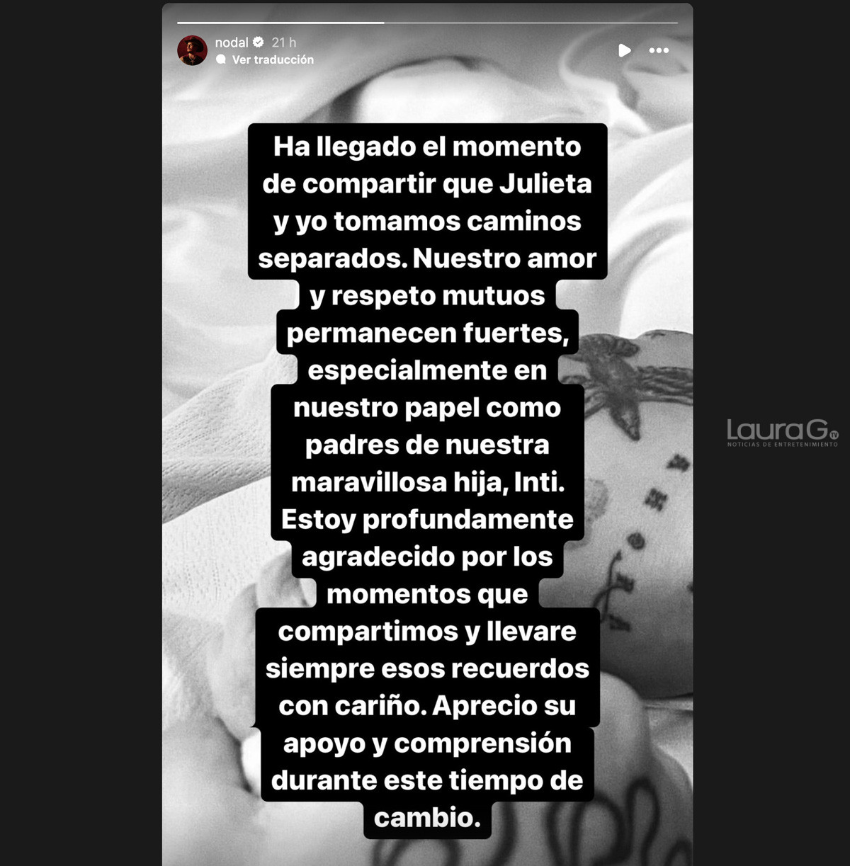 “Ha llegado el momento de compartir que Julieta y yo tomamos caminos separados”, escribió Nodal, agradeciendo los momentos vividos y pidiendo apoyo y comprensión en esta etapa de cambios. Cazzu, por su parte, compartió el mismo mensaje y añadió uno propio: “Los artistas somos una pantalla de lo que sucede en la vida real. Ustedes transitan con nosotros el amor, el desamor, los aciertos y los errores. Gracias”, concluyendo con un símbolo de corazón.