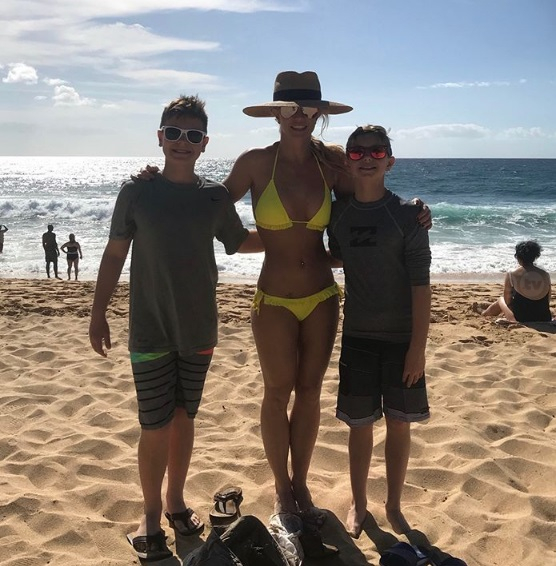 “Mis chicos y yo disfrutando del clima cálido”, escribió como descripción en la serie de fotografías que impactaron por su espectacular figura que tiene.