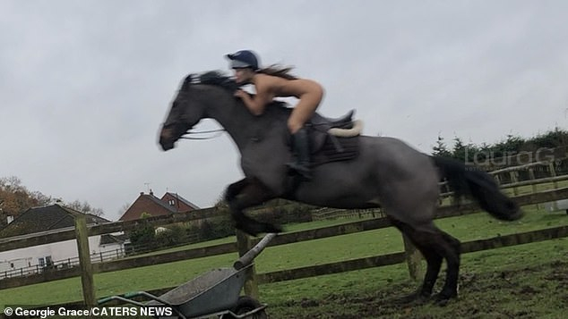 Georgie se filmó sin ropa y calentando con su caballo, Blue; aunque hacía mucho frío estaba decidida a crear su campaña con poca ropa.