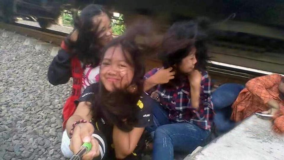 Algunos jóvenes hoy en día buscan la manera de tomarse las mejores fotografías para compartirlas en redes sociales, así le pasó a un grupo de amigas en Indonesia, que buscaban la mejor imagen junto a las vías de tren en Java Central.