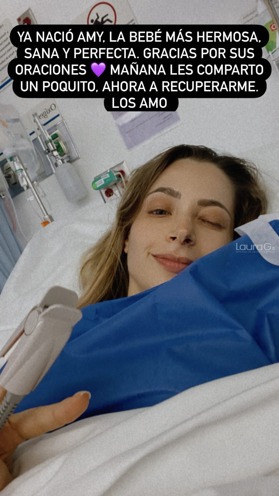 “Ya nació Amy, la bebé más hermosa, sana y perfecta. Gracias por sus oraciones, mañana les comparto un poquito. Ahora a recuperarme, los amo”, escribió como leyenda de la instantánea que colgó en sus historias breves.